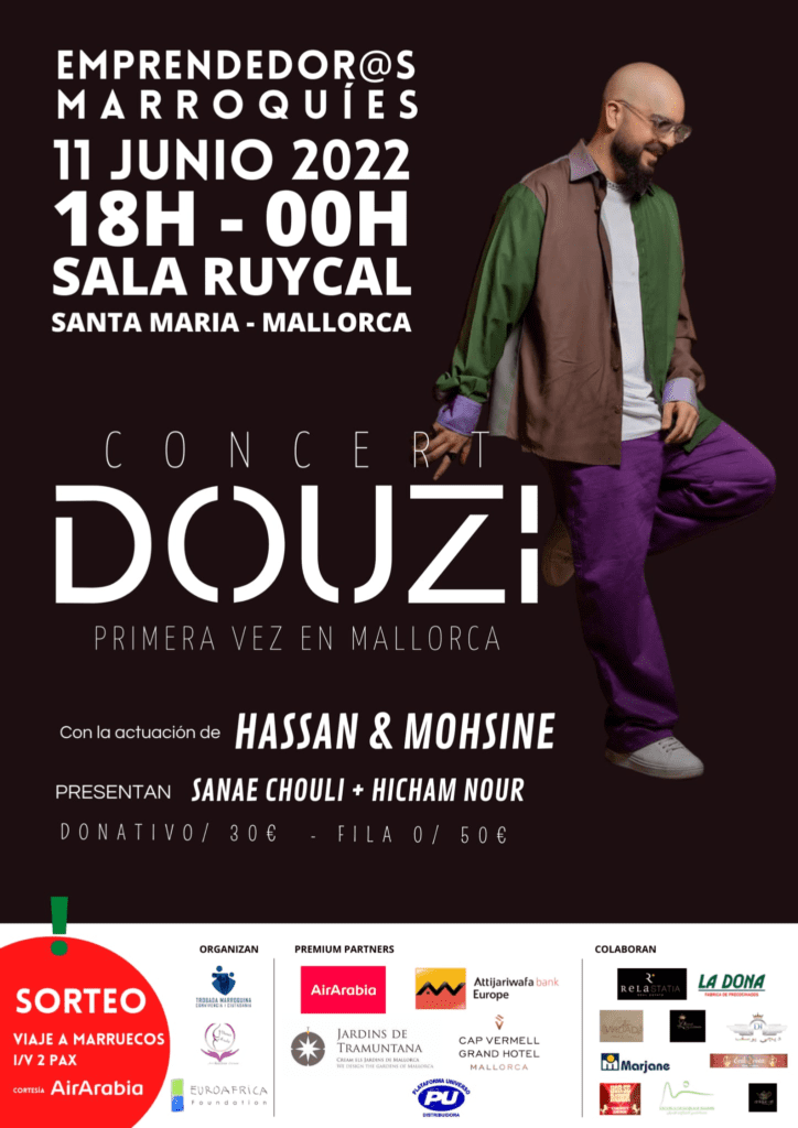 La asociación ha invitado hoy, y por primera vez, al cantante marroquí Douzi y los cómicos Hassan y Mohsine para celebrar este encuentro de emprendedores marroquíes en España y honorificar la mujer marroquí militante residente allí.