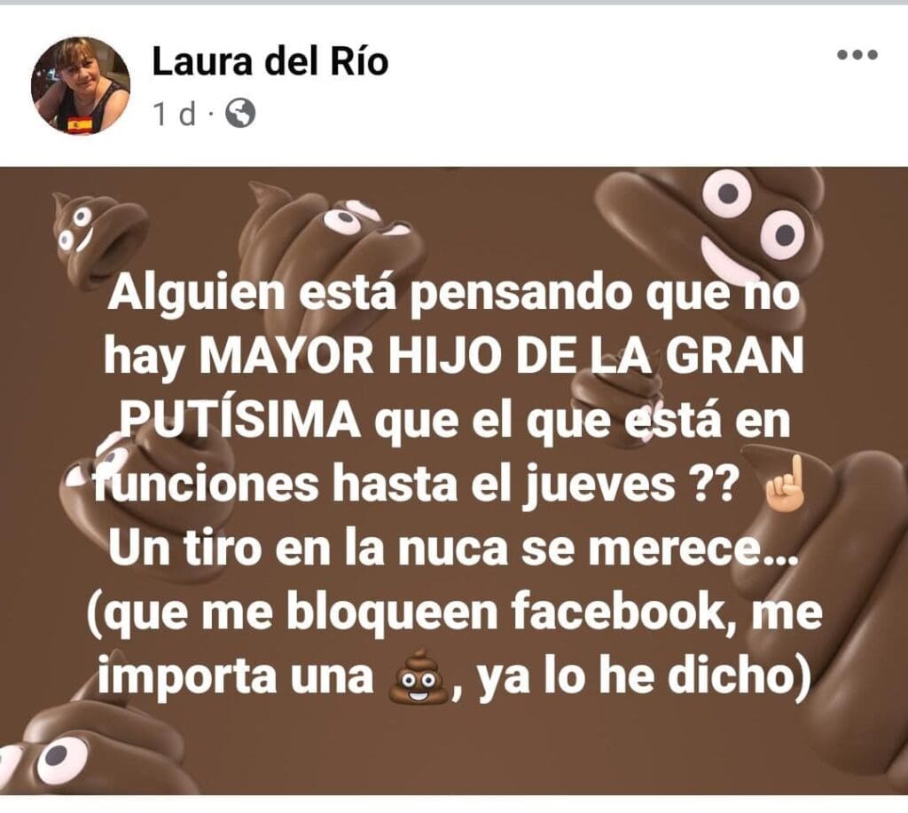 El partido socialista hizo público este hecho a través de la red social X, compartiendo una captura de pantalla que mostraba el mensaje de la concejala. En dicho post, se puede ver que la concejala afirma: «¿Alguien está pensando que no hay un mayor hijo de la gran putísima que el que está en funciones hasta el jueves? Un tiro en la nuca se merece… que me bloqueen Facebook, me importa una mierda, ya lo he dicho».
