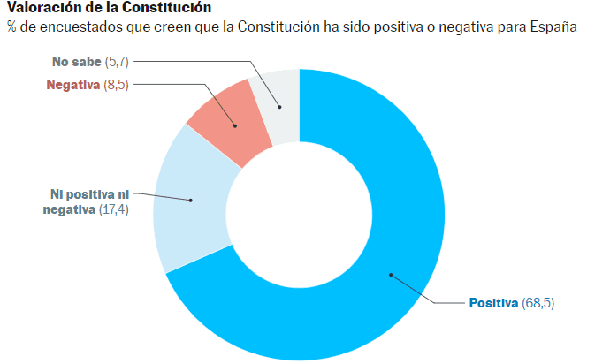 Por otra parte, según recoge el periódico El País, la narrativa que divide entre ideologías, situando a la derecha como defensora del «constitucionalismo» y acusando a la izquierda de abandonar ese marco, no se ve reflejada en los resultados del sondeo; se muestra que el aprecio por la Constitución es transversal en todos los partidos, con altos porcentajes de aprobación.
