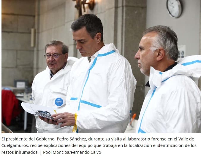 Casa»Internacional»Moncloa: Pedro Sánchez inspecciona personalmente las labores de exhumación de 160 víctimas en el Valle de Cuelgamuros a petición de sus familiares