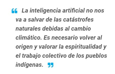 Pero tenemos que ser conscientes de que ninguno de estos avances nos va a salvar. Si enfrentamos las catástrofes naturales que implica el cambio climático, es necesario volver al origen siempre. No podrá reemplazarse ni la espiritualidad, ni el trabajo colectivo de los pueblos indígenas, que es la principal contribución. De manera que les invito a siempre mantenerse allí y a contribuir al resto de la humanidad en estos enormes desafíos.